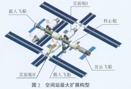 根據(jù)中國空間站工程的總體構(gòu)想,空間站包含天和核心艙、“問天”實驗艙 I 和“夢天”實驗艙 II 三個主要部分,三者通過交會對接和艙體轉(zhuǎn)位組裝構(gòu)成空間站基本構(gòu)型。其中,核心艙前端設(shè)置節(jié)點艙,用于完成載人飛船的對接和停靠;核心艙后端還有一個對接口,用于貨運飛船的對接和停靠。分設(shè)兩翼的兩個實驗艙則通過節(jié)點艙與核心艙相連,配有用于科學(xué)實驗的密封艙,還可以用來存放消耗品和補給貨物、備份核心艙部分平臺功能、安置多功能巡天光學(xué)設(shè)施等。